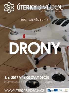 Bezpilotní prostředky jsou v dnešní době nejen velmi dostupnou záležitostí, ale také masově se rozrůstajícím odvětvím průmyslu. Jak tyto stroje vůbec v praxi vypadají? K čemu se dají používat? Jak je to vůbec s bezpečností těchto strojů? Co na ně a jejich používání říká česká legislativa? Tyto a mnoho dalších otázek se bude snažit zodpovědět vědeckopopulární přednáška na toto téma. Přednáška bude doplněna ukázkou několika strojů a souvisejících technologií.