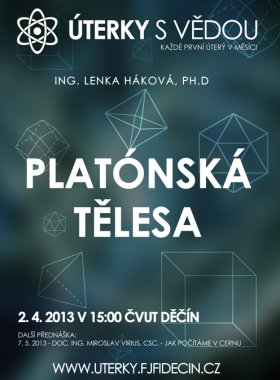 Platónská tělesa, neboli pravidelné konvexní mnohostěny, jsou díky své kráse a symetrii již po staletí objektem zájmu mnoha matematiků, ale i filozofů a umělců. Jejich historie sahá až do druhého tisíciletí p.n.l., staří Řekové jim přisuzovali takřka magické vlastnosti. V této přednášce si zodpovíme otázku, kolik Platónských těles existuje. Podíváme se na jejich matematické vlastnosti a ukážeme si některé aplikace ve vědě a umění. Na závěr zmíníme různá zobecnění Platónských těles.