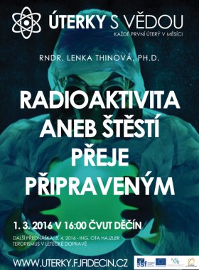 Není jednoduché ani nutné pochopit všechny dozimetrické veličiny, ale je potřeba věřit, že se o nás stará skupina odborníků, kteří se snaží dopad tohoto záření na naše zdraví v životním i v pracovním prostředí minimalizovat. To je možné díky snaze o maximálně bezpečný provoz našich jaderných zařízení a výzkumem a monitorováním všech ostatních zdrojů. Výsledky monitorování může sledovat každý z nás, jen je potřeba vědět, kde informace najít. Pokud budete mít zájem, po přednášce bude možné změřit prvkové složení předmětů, které si přinesete.