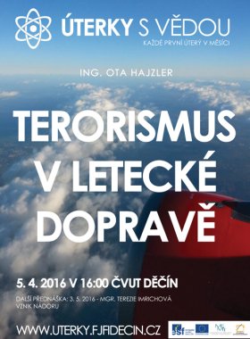 Jakýkoliv incident v letectví vyvolá mezi cestujícími pochybnosti, zda je letecká doprava opravdu nejbezpečnějším druhem dopravy a tyto pochybnosti se stupňují, pokud dojde k teroristickému útoku. Přednáška se zaměřuje na obecné vysvětlení terorismu a na popis základních protiteroristických opatření. Součástí přednášky je i ukázka zakázaných předmětů, které se nesmějí vnášet do letadel a ukázka vybavení bezpečnostních sborů.