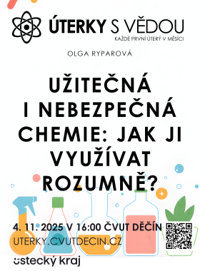 Přednáška ukazuje, jak chemie ovlivňuje náš každodenní život a zdraví. Vysvětluje, jak bezpečně používat běžné produkty a rozlišovat mezi mýty a skutečnými riziky. Přináší praktické rady pro výběr a používání chemických látek doma i ve společnosti. Cílem je posílit povědomí a informovanost, aby chemie byla využívána zodpovědně a bezpečně.